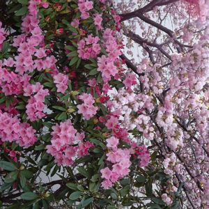 八重桜と西洋シャクナゲ ソメイヨシノが終わったら 西洋シャクナゲが満開になってきました