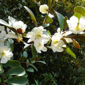 ウンナンオガタマノキ モクレン科オガタマノキ属 中国雲南省原産 濃い緑で光沢のある葉 裏側は茶色の伏毛 3月から4月に芳香のある白い花を密に付ける