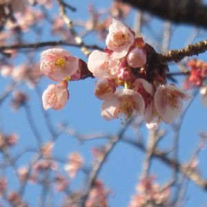 寒桜 メジロやヒヨドリが寄ってきて 賑やかです