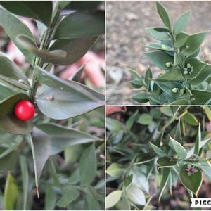 ナギイカダ 蕾が沢山 これから咲くのでしょうか 地中海原産 江戸末期に渡来 葉が退化し末端の茎が葉のように扁平になり 先は鋭いとげになっている この葉状茎の上に花が一個つく 耐陰性が高い 花期は春から夏 冬に赤い実をつける ルスカスの名前でとげのない品種が 八丈島で栽培され収穫後の日持ち性に 優れる(三か月程度)ため 生花の添え花として需要が大きい