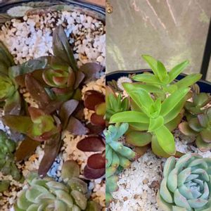 多肉のキャンプファイヤーさん(たしか😅) 左は昨年末のお正月用寄せ植え 赤くて内側がほんのり緑 右は今朝 ハッと目👀を引くほど黄緑が鮮やか✨✨ どしてキャンプファイヤーってお名前なんだろ🤔 炎🔥のように赤くなる時期があるのかな 楽しみです☺️