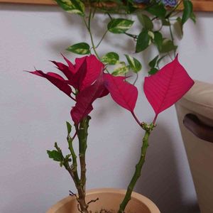 ポインセチアの件。 ピンクとくすみがかった赤の ポインセチア達なんだけど… {\__/} ( • - •){なんか葉っぱ無くなってきた! /つ✾ どうしてだろ… 風も当ててないし、温かい場所にも置いているはずなんだけど… 水もちゃんと乾いたらあげてるのに… もしかして…温度足らないのかしら?? そのうち茎だけになってしまうよ❢ ポインセチアの管理、難しい( ¯꒳¯; )
