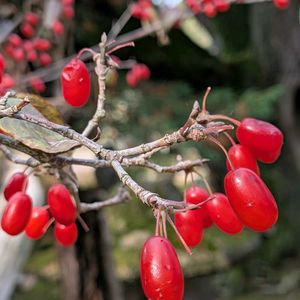 ①紅葉真っ只中の徳川園を歩き見つけた木の実たちです。 ②足元に落ちていたオオイタビ(大木蓮子)の果実 ③シロマユミ(白真弓) ④モチノキ(黐の木) ⑤アリドオシ(蟻通し)
