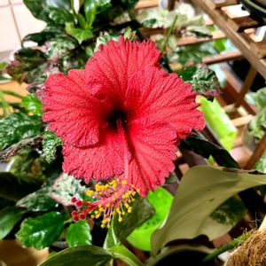 こんにちは☔️長崎は天気悪し💦 体調もあんまりで休暇… 午前中寝ててハイビスカス🌺見たら👀 小さいけど開花してくれとるやん🌺⤴️ ちょっと🤏体調も⤴️