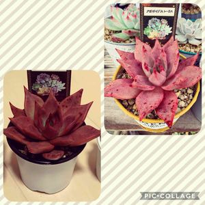 ロメオ=レッドエボニー=タウラス(トーラス)名前が沢山付いてるのでなんと言っていいのか分からない子ですが…タグはトーラスと書いてるのでこの場ではトーラスと呼ばせてもらいます(≧ω≦)ゞ 僕んちのトーラス…紅葉した覚めたにも程があるお姿に(._."Ⅱ)本当なれば紅葉冷めてもピンク色のはず(;-ω-)ウーン💦 あんまり言いたくないですが…グロい😭💦 この間の投稿したブラッドマリア×エボニーよりデビルマンカラーψ(`∇´)ψ⁉️(笑)💦 夏に向かって早く深紅の真っ赤かに戻って欲しいです(´ω`)トホホ… 上pic.去年の11月 下pic.現在…大きくはなってるんですけどね (;´・ω・)ウーン・・・