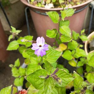 こんにちは😃 ブロワリア・アメリカーナの花が咲いていました🌼 花言葉は「祈り」「清浄」… 外輪は青く内輪は白い花で とても綺麗に咲いていました♡