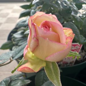咲きはじめがピンク? 咲き切ったら白? 成長が楽しみです🌹