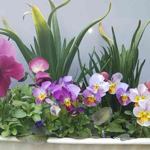 切り戻した我が家のパンジービオラさんたちを飾ってみました🌸
