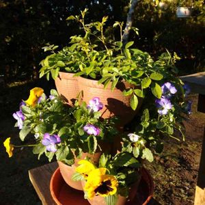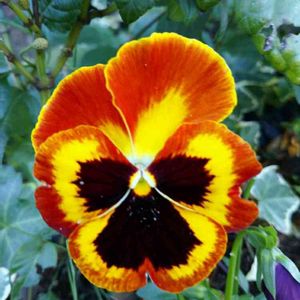 パンジーとヘデラの寄せ植え ビオラは花弁が小ぶりで可愛いですが、 花弁が大きいパンジーは迫力があります!