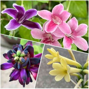 ⬆️アシスタシアさん💜💗 ↙️サッコーフジさん💜 ↘️チューベローズさん💛 別名:夜来香(イエライシャン)さん💛 こちらもみんな可愛かったです🤗💕 (直売所・園芸センターにて先日撮影)
