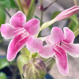 キツノネマゴ科 アシスタシア 白い縁取りの濃ピンク花 しなやかな風情あり クマツヅラ科クレロデンドルム ブルーウィング 蝶のような青い花がお洒落さん🦋 先月迎えたお花たち 次々咲いて彩り添えてくれる