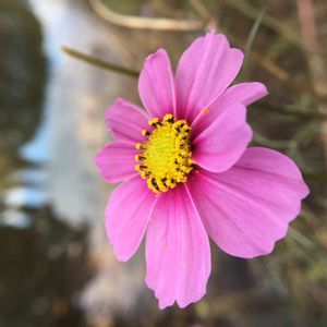 睡蓮の如く池に浮かぶとまではいきませんね。水辺のコスモス