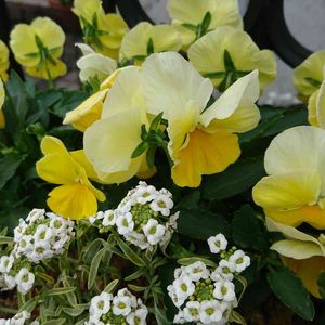玄関のお花をニチニチソウから「よく咲くスミレ レモネード」に植え替えました😊 スーパーアリッサム フロスティーナイトがとても良い香りです😉💕