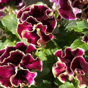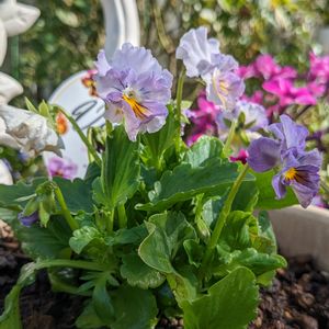 ビオラ イリスプリエール フォクスリータイムと。ふわっとフリルとアンティークな優しい色合いで庭を彩ります。