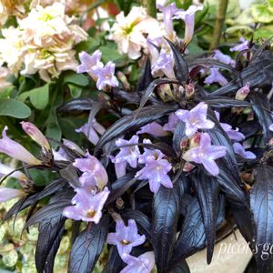 ✨ストロビランテス ブルネッティ✨ 玄関横の寄せ植えに、光沢のあるパープルブラウンの葉が素敵で脇役にいれていましたが、薄いパープルのお花がいっぱい咲き出しました💕 初めて見るお花なので可愛らしくて嬉しい〜💓 後ろのストックもまだ頑張っています😊