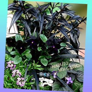 先月に投稿したブラック系大人寄せ植え🖤(10月27日) ストロビランテスのブルネッティの黒さが増してます🖤😆🖤 ラブラドリカ様も咲きだしましたぁ😆💜