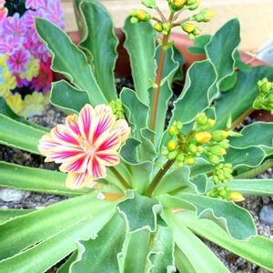 レウィシア 1月から咲き続けてます💗 まだまだ蕾もいっぱい🥰 今朝は大荒れの雨(九州) 震災があった地域も☔予報、皆さん寒さが戻りますし気をつけてくださいね