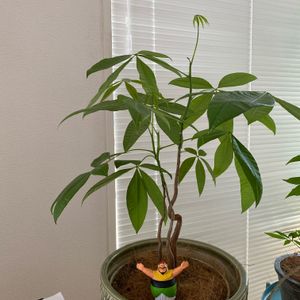 鉢植えプチジャングルでお茶🍵を啜る波平さんの図