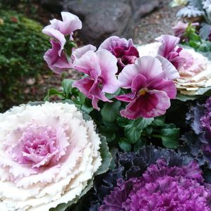 おはようございます❄️ お正月用寄せ植え 1 😊 ビオラ(レインボーウェーブ ピンクローズビーコン)が気に入ってお迎えしました💓