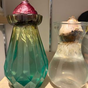 今日からヒヤシンスの水栽培を始めます🪻 色はピンクと白です。 去年は1つでもいい香りだったので今年は2つでさらにいい香りです🎵
