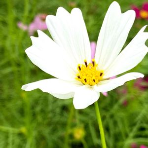 コスモスの白いお花が綺麗に咲いてます🌸 阿蘇 萌の里にて 調べました。 種まき コスモス(秋桜)は、発芽温度が20℃前後なので自然の状況下で種まきをする場合は4月以降が適当です。 種をまいたら薄く土を被せ、最初は水をたっぷり与えます。花壇に直まきする場合は3、4粒ずつ、20cm前後の間隔でまきましょう。 コスモス(秋桜)は、発芽から開花まで2~3か月を要するので、咲かせたい時期を逆算してまきます。例えば8月に咲かせたいのであれば5月頃、10月ならば8月に種をまくと理想の時期に花を咲かせることができます。