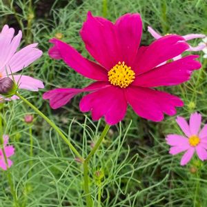 今日のお花🌸 コスモスのお花が綺麗に咲いてました☺️ 阿蘇 萌の里にて 調べました。 コスモスは、荒地でも育つような丈夫な植物ですが、過湿には弱いので、花壇づくりは日当たり・風通しのよい場所を選び、よく耕し、床を少し盛り上げて整地します。 多肥にすると葉が茂りすぎ、茎がやわらかくなり倒伏しやすくなるので、元肥は入れず、堆肥だけをすき込んで、苗を植えるようにします。 摘心:5月から8月にかけて摘心を繰り返して育てると、草丈を低く仕立てることができます。 支柱立て:草丈が高くなると倒れやすいので、6月から11月ごろに適宜支柱を立てましょう。また、わざと茎を倒すとわき芽が発生します。これを伸ばして、低い位置で花を咲かせることも可能です。