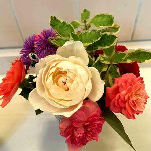 ミニバラ🌹ひなあられ のお花が綺麗に咲いてました。 はな阿蘇美にて 調べました。 中国原産の小型のオールドローズ系の性質を持つ小輪のバラを総称してミニバラと呼び、多くの品種が作られているが、これは2001年に国際コンクールで銅賞を受賞した日本で作出された品種。日本に自生するサクラバラ の色合いに似る 名前の由来 ひなあられのように可愛らしい色合いからきているとか。超遅咲きで、他のバラが咲き終わってから見頃を迎えるようで、見てもらえる機会が少ないそうです。可愛らしい花なのにもったいない.
