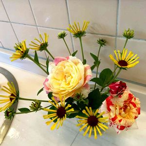 バラの花🌹が綺麗に生けてありました。 阿部牧場の直営店【ASO MILK FACTORY】にて 変わった色のバラさん🌹 ルドベキア ヘンリーアイラーズさん🌼 はな阿蘇美に咲いていましたね💕 トイレに飾ってあるお花🌼 癒されますね🥰