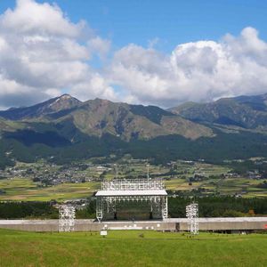 おはようございます〜♬ 今日も朝から良いお天気です☀️ 熊本野外劇場 アスペクタ 最大5万人を収容する広大な劇場 春には6700本の桜が楽しめます🌸🌸 阿蘇の山と桜の花は綺麗です🌸🌿 昨日はリハーサルが行われてました 舞台中央に人が一人🕴 わかるかなぁ〜 (๑ˇ∀︎ˇ๑)″°∮︎*.♪︎
