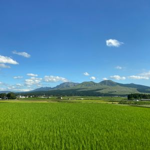 稲の穂が綺麗✨✨ 阿蘇内牧から阿蘇五岳を望む 觔斗雲 キントウンみたいな雲が可愛く浮かんでいた。 2021.9.17撮影 米塚も見えていますよ。 拡大してみてね❣️ さぁー! どこに 米塚は写っているでしょう❓ 今日も楽しい一日をお過ごし下さいね🥰 米塚 の 答え 筋斗雲の影の ちょいと右上 です。