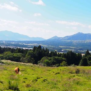 おはようございま〜す☀️ 今日も阿蘇 高森町からのpicです 赤牛がのんびり草を食んでいるのがわかりますか…🐂🐂 何頭いるでしょう〜⁇ 今日もいいお天気です☀️ 今週も頑張りましょう♬🤗