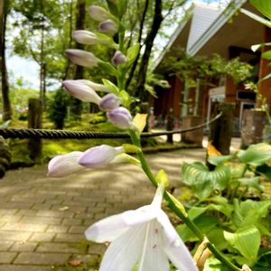 ギボウシ ホスタ のお花が綺麗に咲いてました🌸 阿部牧場の直営店【ASO MILK FACTORY】にて 調べました。 ギボウシ(ホスタ)の育て方 栽培環境 明るい日陰、または午後は日陰になる場所で育てます。庭植えの場合はあまり激しく地面が乾燥する場所は避けます。 水やり 鉢植えの場合は表土が乾いたら十分に与えます。庭植えの場合は表土が乾いて、しおれているようなら十分に水を与えます。 肥料 4月から6月にかけて月に1回、親指大の固形油かすを5号鉢で5~6個ほど施します。9月から10月には月に1回、親指大の固形骨粉を5号鉢で4~5個施します。 病気と害虫 病気:ウイルス病 ウイルス病は初期には薄いまだら模様が入ります。やがて葉があぶった海苔のように縮れて、不規則にゆがみ、ときに腐った黒い斑点が生じます。治癒不能なので、感染した株は廃棄します。 害虫:ネコブセンチュウ、アブラムシ ネコブセンチュウは根にこぶをつくり、株の成長を衰えさせます。ひどい場合は根茎も侵します。放置すると被害が大きくなるので、植え替え時に被害根を切り捨てます。 アブラムシは若い葉や花茎、蕾につきます。ウイルス病を媒介するので、早期に防除しましょう。 用土(鉢植え) 水はけ、水もちのよい、適度に湿り気を保つ土が好適で、土質は問いません。市販の草花用培養土で問題なく育ちます。 植えつけ、 植え替え 鉢植えの場合は毎年または1年おきに、2月から3月に植え替えます。庭植えの場合は3~4年に1回掘り上げて、株を整理し、植え直します。小型種を盆栽づくりにする場合は植えっぱなしでもかまいません。 ふやし方 株分け:植え替えの際に、2~3芽がついた根茎を一つの単位として切り分けます。大型の種類は株を2~3つに分割するか、自然に分かれている部分で分けるにとどめます。園芸品種は株分けでふやします。 タネまき:秋に採取したタネを2月から3月にまきます。用土は親株のものと同じで問題ありません。タネは1か月ほど、湿らせた清潔な川砂やバーミキュライトに混ぜて、冷蔵庫の野菜室に保管してからまくと発芽がそろいます。 主な作業 交配:開花期に目的とする株の雄しべから花粉をとり、別の株の雌しべにつけます。雌側の花は前日に蕾を開き雄しべを取り除いて、虫が入らないように袋をかけておきます。交配が終わったら、また袋をかけておきます。雑種化しやすいので、狙い通りのタネが欲しければ必要な作業です。 タネの採取:10月から11月に黄色く熟した果実を採取します。果実の先端が開き始めたころが適期です。封筒などに入れて乾燥させ、よいタネだけを選び出します。