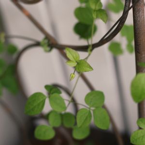 一昨年のクレマチスコンテストでいただいた『マリアコーネリア』 去年咲かなくて、鉢増ししたり肥料をあげて今年やっとお花が見れました✨✨ 小さくて儚げな白い花… ちゃんとお世話しないとダメね😅 まずは“とりあえずの針金の支柱”をやめよう💦