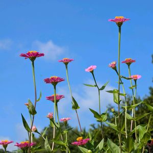 久しぶりの青空に心が弾みます🩵🩵🩵 可愛いモンシロチョウもお気に入りの百日草🌼🦋 1️⃣2️⃣