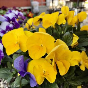 小庭のお花 11/1定植〜2/22🌱 『ビオラ:タグなし80円』 今朝起きたら屋根に雪が積もってた&今もたまに舞ってるよ〜(年2〜3くらいエリアなのに今シーズンはめっちゃ降る❄️)そんな中マイペースに(私みたいだな🙊)成長中の鮮やかなタグなしさん🌱 周りのみんな1度目のピンチ済んでるから✂️お住まい広いよね〜自由最高٩( ᐛ )و 🐵成長の様子 ↓ から見てね 【タグなしビオラ♬さきざる🏷】 【さきざる花壇♬🏷】