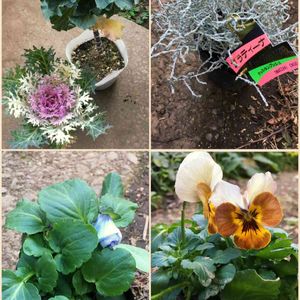 園芸店さんの年末売りつくしALL100円SALEにて😁その4〜8 葉牡丹2種😅何者かにかじられないように、即ネットの下に! 買ってよかったのかどうか?😓 以前に購入して、もう1苗欲しいと思っていたプラティーナ💕 好みなカラーの落ち着いたビオラ😆 どんなお顔か不明だけど、ブルー系らしいパンジー😊