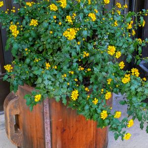 花友さんに送って頂いて3年目になる島寒菊が立派な大株になりました。。 直立せず拡がって咲くタイプのようで、鉢ごと古い1斗枡に入れ込んでみたらピッタリいい感じに収まりました☺️ このまま暫く楽しめます(。•̀ᴗ-)✧