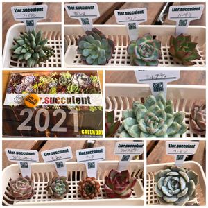 さて、実はカレンダーセット… もう2セット頼んでました(*ノω・*)テヘ 前回のは旦那サマからのプレゼント🎁 今回のは自分で頼んだものです🍀 たった発注完了時間、2分しか変わらなかったけど、番号が700以上違って、更に届いた日は12/21と4日ほど違いました ヮ(゚д゚)ォ! たった2分なのにスゴイ💨✨ というわけで!第2段✨ 再び連投失礼します(*´∀`) ✻ラウイ×シャビアナ ラウイさんとシャビアナさんの交配種なんて、キレイなコになりそー(*´ω`*)💕 成長めっちゃ楽しみ〜🎵 ✻メキシココロラータ×オデロイ 小さいのにプリムチですでにカワイイし、赤くなってて素敵な色✨ ホント可愛い〜(*´Д`)ハァハァ ✻サハラ 白く透き通る感じのコでめちゃ可愛いのに、それが2コ包まれてましたΣ(゚∀゚ノ)ノ💕 2つも!!!いいんですかねっ!嬉しい〜っ✨ ✻スノーバニー 絶対このコ、かわいい子! キュッとしたら絶対カワイイじゃないの✨ 上手に育てられる自信はないけど、頑張ろっ٩(๑òωó๑)۶ ✻シャーロット 第1弾の方にも入っていたコだけど、こっちのコはコロコロ小さめ💕 葉の色付き方がとってもキレイ✨ 全部違って全部いいっ(*´ω`*)