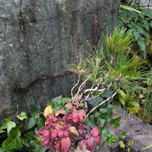 🏷️石の日 ①石を背景にクロマツとナンテンの盆栽 先日 昨年作ったものに針金掛けを しました ②石の上にクロマツの盆栽 ③④庭にキジバトが遊びに来ました 池の周りの石の上をトコトコ歩く姿が 愛らしい…