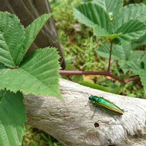 日中、空いた時間に庭パト👮 派手なお客様発見~✨ 昔、実家のタンスの中にはタマムシの死骸が丁寧に和紙にくるまって入れてありました😄 なんでも衣装に困らなくなるんだとか👘 それにしても綺麗😍 そして不自然なほど派手💦😅