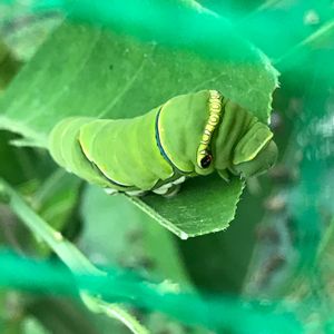 萩の甘夏に触発されて買ってしまった甘夏の木にアゲハチョウが産卵💕 でも一番大きくなっていた幼虫が突然いなくなったので、残りの二匹を鳥から守るためネットを被せました。 一昨日ヒヨドリが大騒ぎしてたので 「やられた‼️」 ネットの目が大きくて嘴が簡単に通ったのかも😰 ビクビクして覗いたら、ちゃんといました❣️ 良かった〜😅 立派な蛹になっておくれ🙏