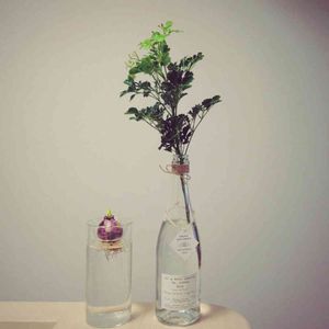 キッチン周りにひさしぶりにグリーンを!! いい気分♪♪ ボトルの観葉植物…名前忘れてしまいました…。