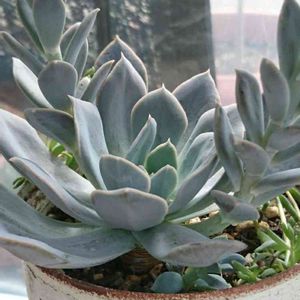 台風の後の暑さで いくつか☆に、、、 かろうじて大丈夫そうなところはカットしたり葉挿しにしたり。 この子は手のひらサイズに大きくなりました☺️