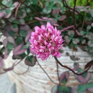 しろつめくさ じゃなく あかつめくさ? 銅葉のクローバー(名前忘れた)に花が咲いたら(咲くと思ってなかった)思いの外、可愛い❤