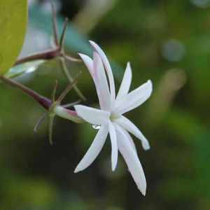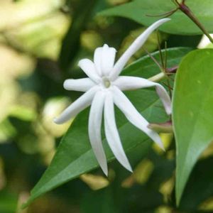 4月に入荷したエンジェルウィングジャスミンの苗に花が咲き始めました♪とってもいい香りです。