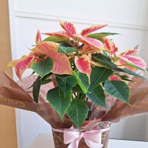 🍀🌻🪴💐🌹🌻🍀 🍀❤️💛🤍ポインセチア🤍💛❤️🍀 💐ポインセチアの主な花言葉は(祝福 する) (聖夜) (幸運を祈る) (私の心 は燃えている)です 💐ポインセチアはトウダイグサ科ト ウダイグサ属の植物で、原産地は メキシコで、別名をショウジョウ ボク(猩々木)と呼びます 💐ポインセチアの赤い部分は花では なく苞ピンクの(ほう)で、中央に黄色く見 えるのが花です。花びらは存在し ないので、赤やピンクの部分を嗅 いでも香りはしません 🍀🌻🪴💐🌹🌻🍀