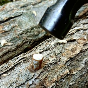 古いホダ木 家の後ろの古い、古い、ホダ木。前の前のオーナーさんの置き土産。今まで、何も無かったのに、突如しいたけが1ツだけ出てきた!ビックリ!!