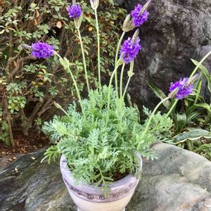 寄せ植えしたハーブ🌿寒さに負けずにレースラベンダー💜が急成長してお花が綺麗✨😍