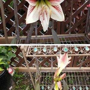 今年5月のアマリリス😊母が育てていたのを初めて株分けと言うものをしたので咲くか心配してましたが、何とか咲いてくれました。今は葉っぱが沢山出て来たので来年の春は沢山咲いてくれる事を願ってます😊