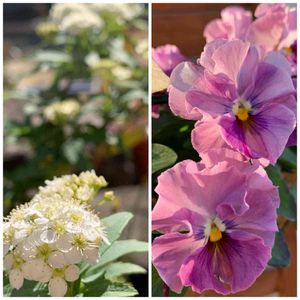 こんにちは 昨年 入院中に寂しくなった 寄せ植えの中に植えたコデマリ 以前の子は未だ花は先だけど 好きな花なので 何本あってもいいかな😊 ハンギングのビオラが日差しを受けて とても綺麗でした